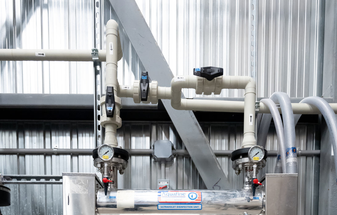 Successful bacteria control involves effective treatment, the most common of which is ultraviolet (UV) sterilization and final filtration. Often, we achieve the best results by combining these technologies. Final filtration typically starts at 0.2 µm, and some applications will require down to 0.01 µm. These filters ensures that physical bacteria, endotoxins, viruses, and other contaminants are captured in the filter and do not enter downstream processes.